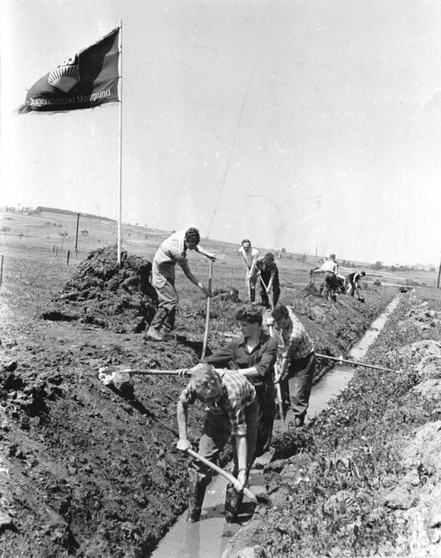 베를린 장벽 건설 이후, FDJ는 서방 언론의 동독 유입을 방해하는 데 관여했다. FDJ 부대는 서방 프로그램을 듣는 사람들의 이름을 외치거나 문에 포스터를 붙이는 지역 사회에 파견되었다.[28] FDJ 회원들은 또한 서쪽을 향하는 TV 안테나를 해체하도록 요구했으며, 심지어 FDJ 회원들이 지붕에 올라가서 문제의 안테나를 톱으로 잘라내기도 했다.[28]