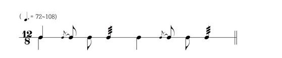 시조 장단은 5박 장단과 8박 장단이 교대로 쓰인다. 한 박을 4분음표로 나타내면 5/4박과 8/4박이 된다.3. 민속악 장단