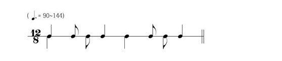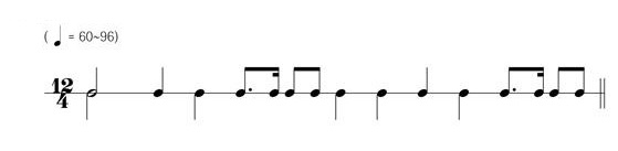 취타 장단은 행진 음악에 사용되는 12박 장단이다. 한 박을 4분음표로 나타내면 12/4박자가 된다.[1]2. 5. 가곡 장단