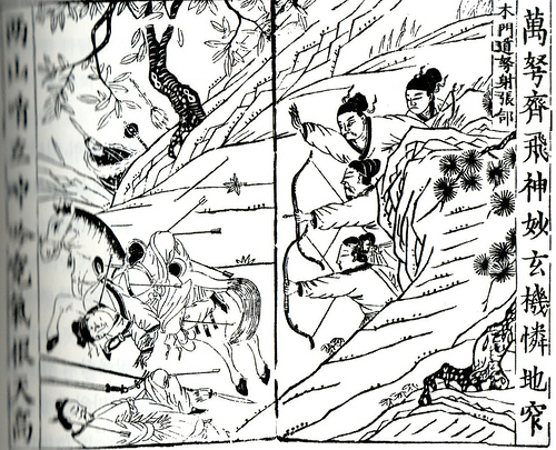 『太平御覧』巻291に引く『漢表伝』によれば、蜀軍は樹木の木肌を削って「張郃此の樹下に死せん」と大書し、その両側に強弩数千を伏せておいた。追撃軍がこの樹を見つけて不審に思い、張郃自ら上記の文章を読んだ途端、弩兵が一斉射撃し張郃を射殺したという。ただし、この内容は『史記』孫臏伝で、[[孫臏]]が[[龐涓]]を誘殺した際と全く同じものであり、物語を引き立たせるために過去の故事を引き写した可能性が高い。参照、渡邊義浩『諸葛亮像の変遷』p15(『大東文化大学漢学会誌』37,1998年)[http://www.ic.daito.ac.jp/~y-wata/prof/gyou/ronbun/g_r_12.pdf]。
