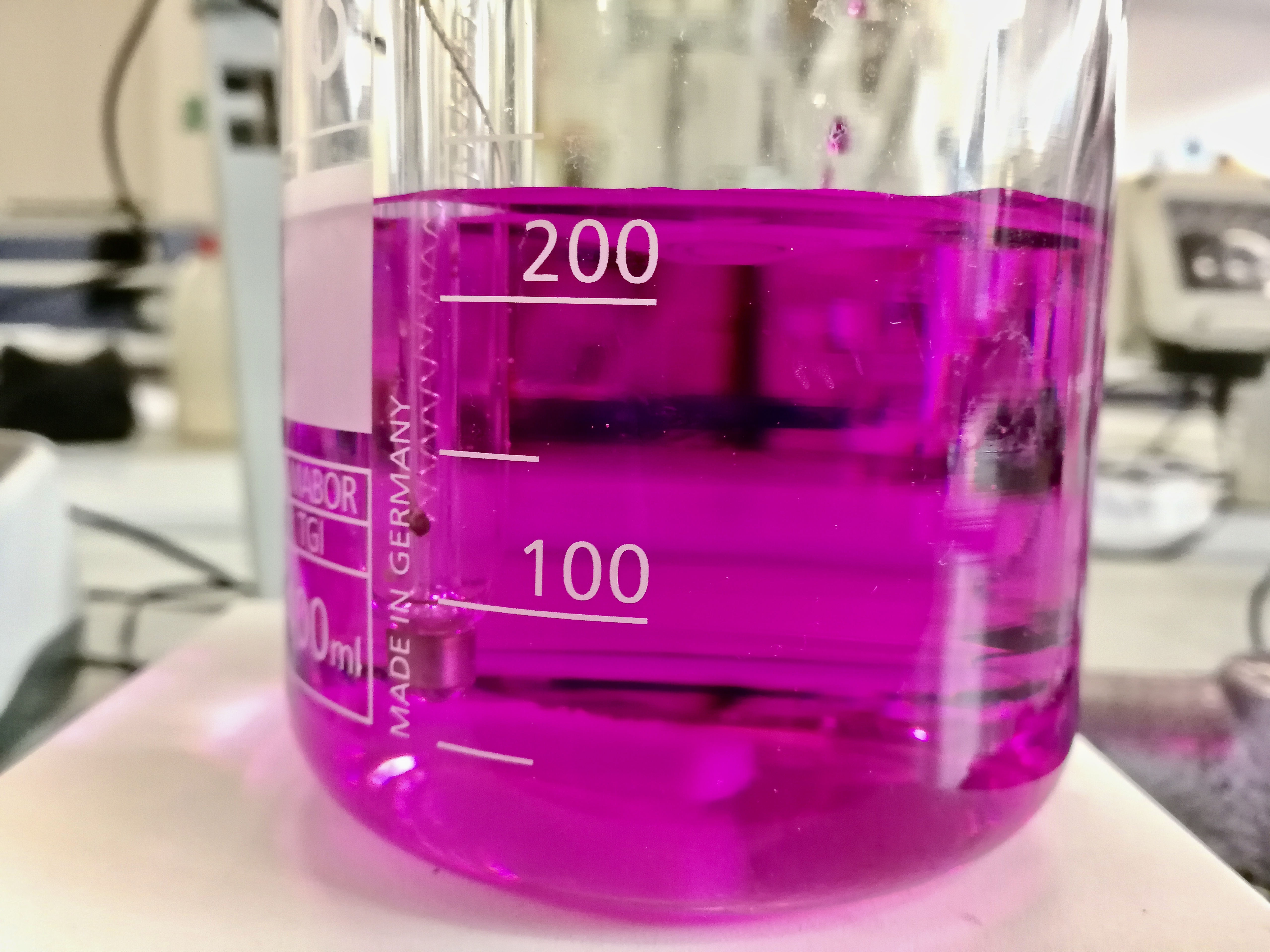 반응물이 종말점에 이르면 분석 대상 용액의 농도를 측정한다.[55] 이때, 단 한 방울의 적정제로 인해 비커 속 반응물의 농도가 변하여 지시약의 색이 확연하게 변할 수 있으므로 주의해야 한다.