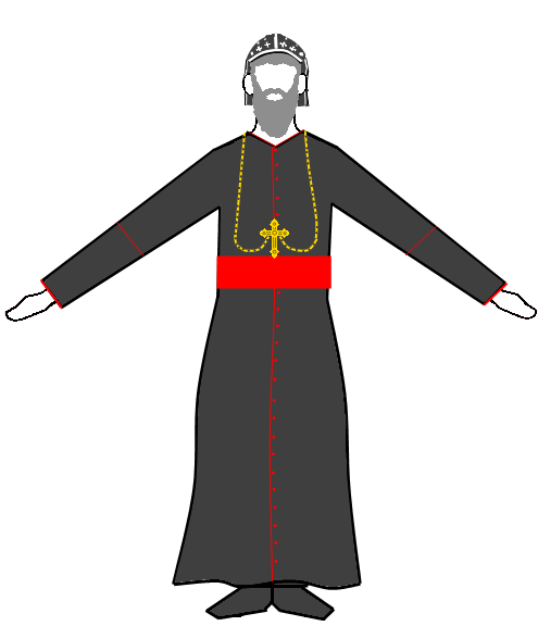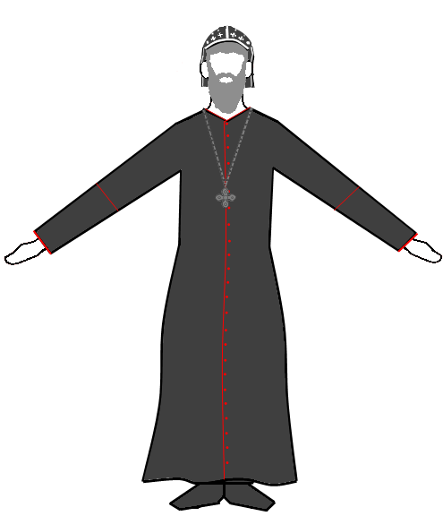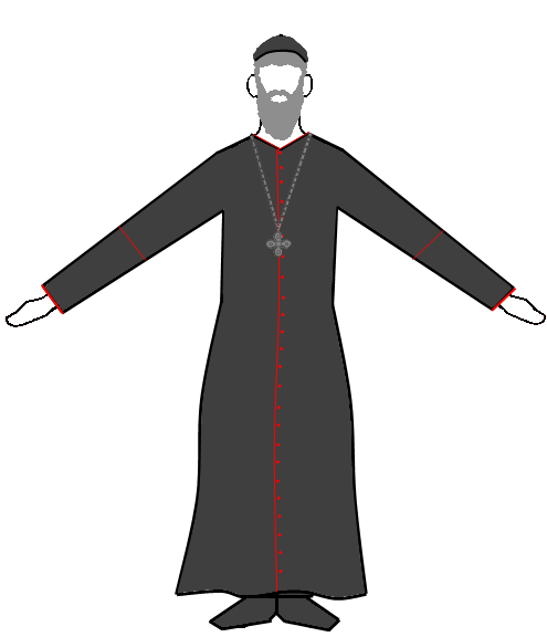 | 수단 (카속, cassock|카속la) | 성직자의 평상시 외출복으로 사용되는 발목까지 오는 긴 옷. | |