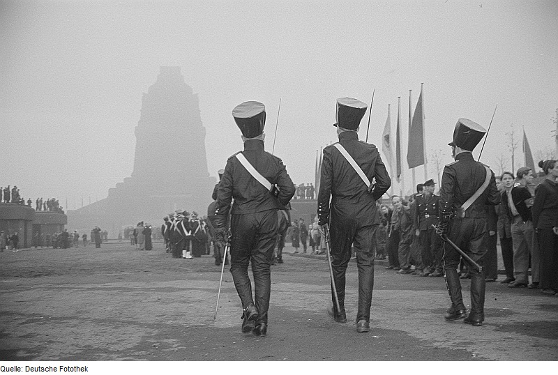 해방 전쟁으로도 알려진 라이프치히 전투 직후, 독일에서는 이 전투를 기념하는 다양한 움직임이 나타났다. 자유주의 사상가들과 젊은 학생들은 이 전투를 독일 통일의 시작점으로 여겼다.[1] 이들은 프라이코어와 란트베어 연대의 활약을 신화화하며 민족주의적 열망을 고취시켰다.[2] 반면, 보수주의자들과 군주들은 왕자들의 역할을 강조하며 민족 국가에 대한 열망을 경계했다.[3]주요 자유주의 작가인 에른스트 모리츠 아른트는 전투 기념을 촉구하며, 10월 19일을 축제일로 지정해야 한다고 주장했다.[4] 그의 제안에 따라 전투 1주년에는 독일 전역에서 화톳불을 피우는 등 다양한 축하 행사가 열렸다.[4] 하지만 바덴 대공국, 뷔르템베르크 왕국 등 일부 지역에서는 이러한 행사가 금지되기도 했고, 하노버 왕국에서는 영국 조지 3세의 즉위 축제에 통합되었다.[4] 프로이센 왕국의 수도 베를린에서는 프리드리히 루트비히 얀이 이끄는 투르너 운동이 대규모 행사를 주최했다.[5] 바르트부르크 축제와 같이 민족주의적 성격의 기념행사도 이어졌다.[4]