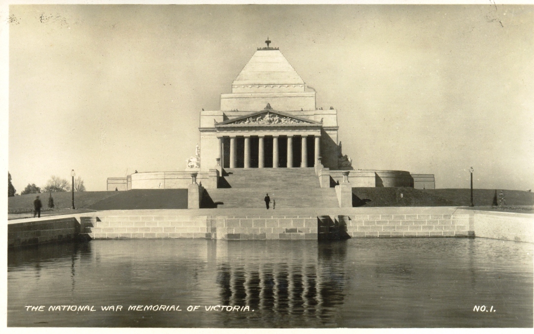 제1차 세계 대전이 1918년 11월에 끝나자마자 멜버른에 전쟁 기념관을 건립하자는 제안이 나왔다.[4] 1920년대 초, 빅토리아 주 정부는 전쟁 기념물 자문 위원회를 임명했다. 이 위원회는 스탠리 경이 의장을 맡았으며, 멜버른 시 남쪽으로 뻗은 주요 도로인 세인트킬다 로드에 "승리의 아치"를 세울 것을 권고했다.[5]1921년 8월에는 제1차 세계 대전 당시 호주군 사령관이었던 존 모나쉬 장군을 중심으로 집행위원회가 구성되었다. 이 위원회는 곧 "승리의 아치" 건립안을 폐기하고, 대신 세인트킬다 로드 동쪽에 거대한 기념비를 세우자고 제안했다.[30] 이 위치는 도시 중심부에서도 잘 보이는 곳이었다.[6]