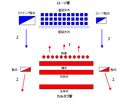 기원전 202년 10월, 자마 전투에서 스키피오가 이끄는 로마군과 누미디아 연합 기병대가 한니발의 군대를 격파했다. 이 전투로 카르타고는 로마에 평화를 요청하게 되었다.