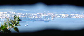 작전 트레이서의 서쪽 관측소 관측 구멍을 통해 본 지브롤터 만의 모습