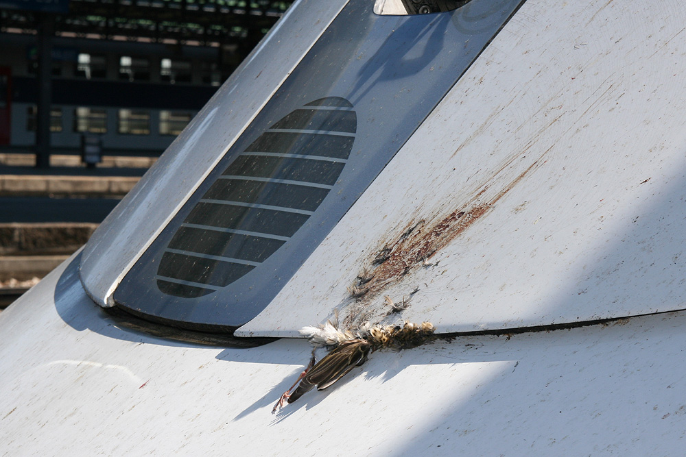 고속철도에서는 차량의 고속화가 진행됨에 따라 조류 충돌이 자주 발생한다. 특히 신칸센에서는 상당한 빈도로 발생하는 것으로 보이나, 전면 유리에 부딪히지 않는 한 주행에 큰 지장이 없다고 여겨져 보고는 적다. 1965년 5월 7일, 쇼와 천황은 신칸센 이용 중 “피할 수 없이 운전대에 부딪힌 참새의 흔적이 창에 남아있네”라는 어제시를 짓기도 했다.[98] 재래선에서도 발생할 수 있는데, 2014년 3월 28일에는 JR동일본 무사시노선에서 까마귀가 열차에 충돌하여 전면 유리가 파손되기도 했다.[99]