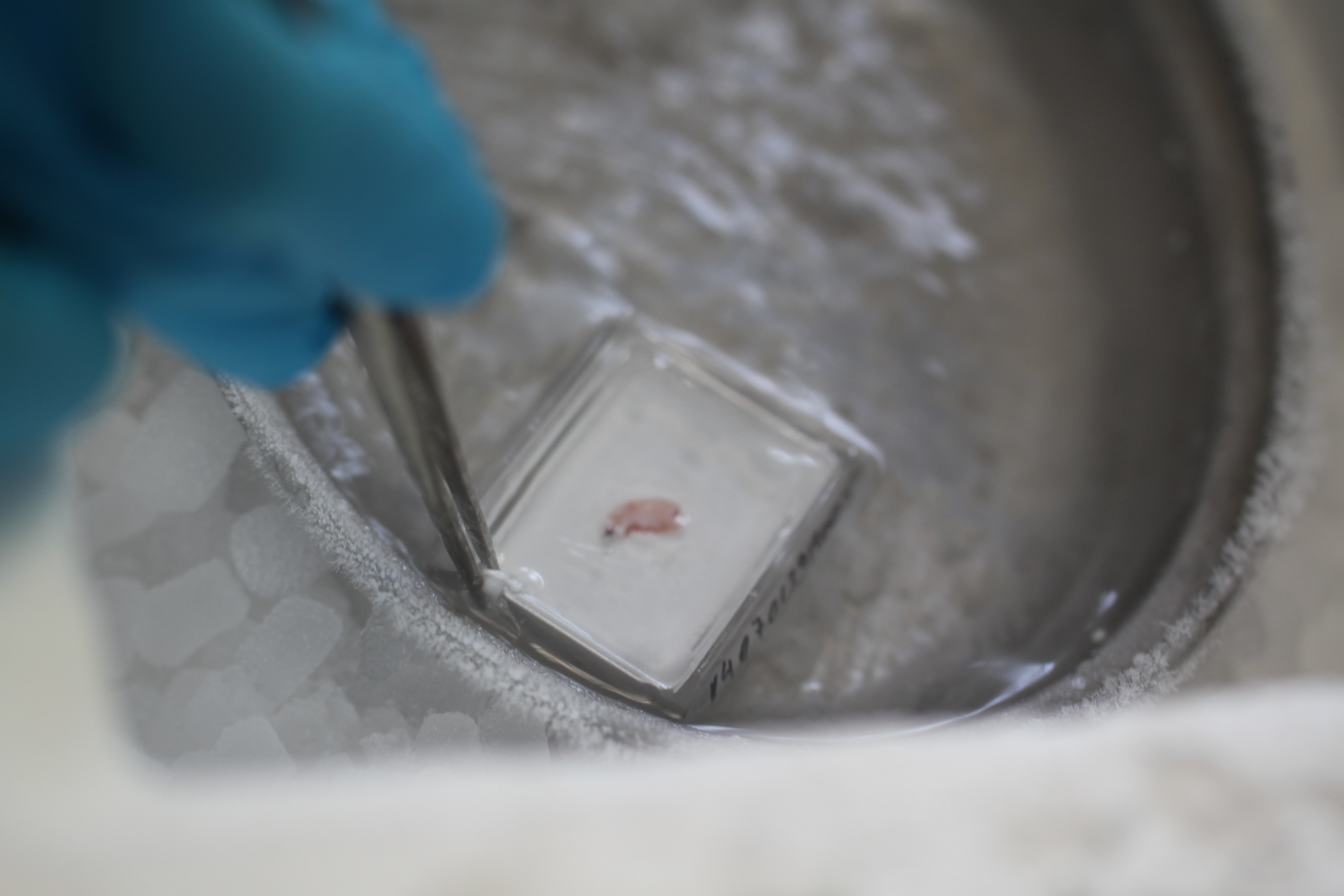 냉동 절편을 만들 때는 조직을 수성 포매 재료에 넣고 얼린다.