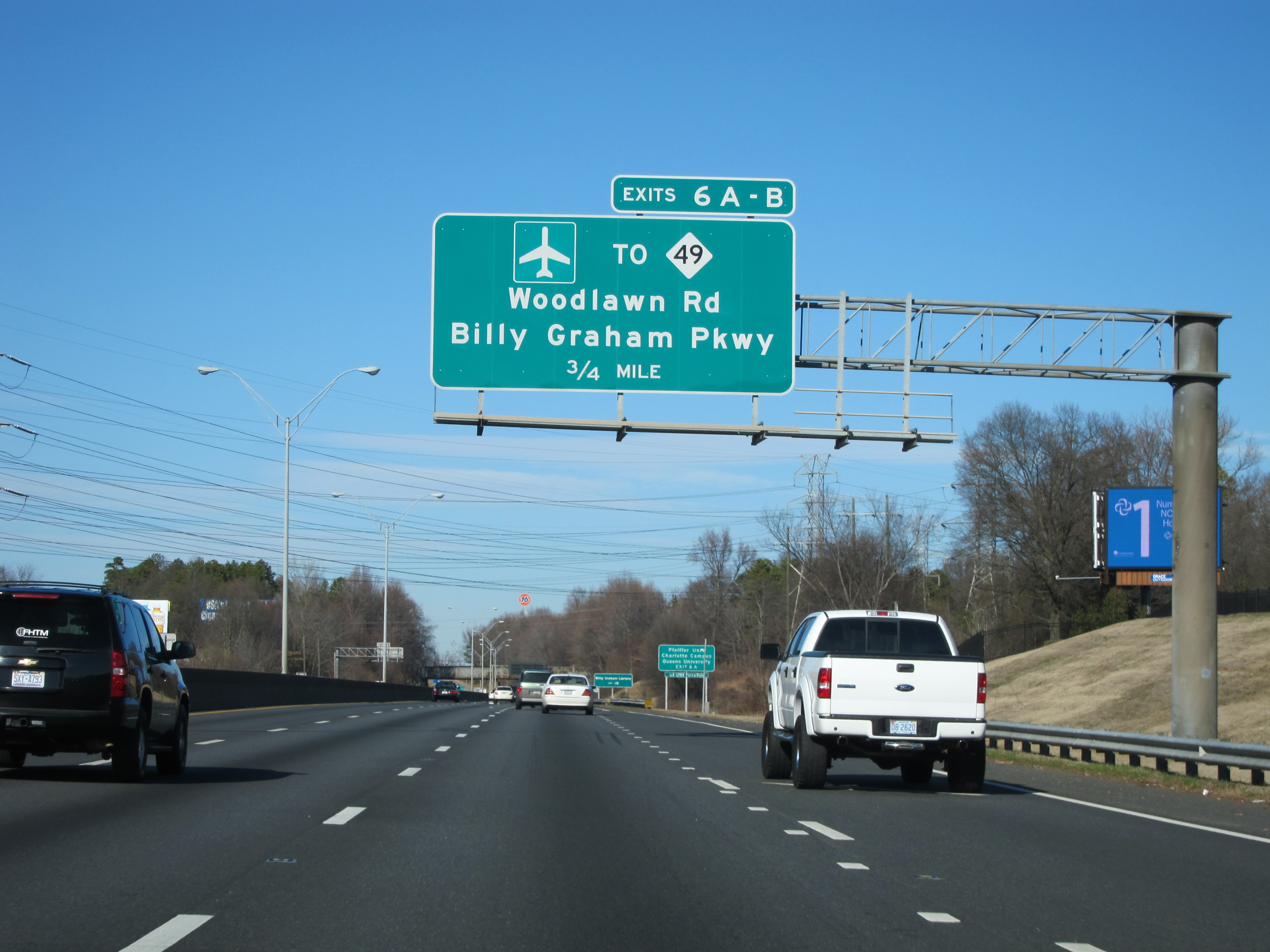 : 포트밀 북쪽에서 US-21. 이 고속도로들은 샬럿까지 동시 통행한다.