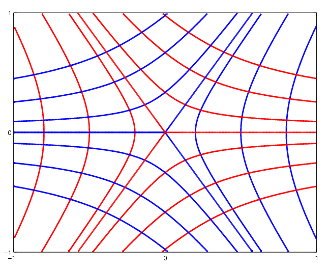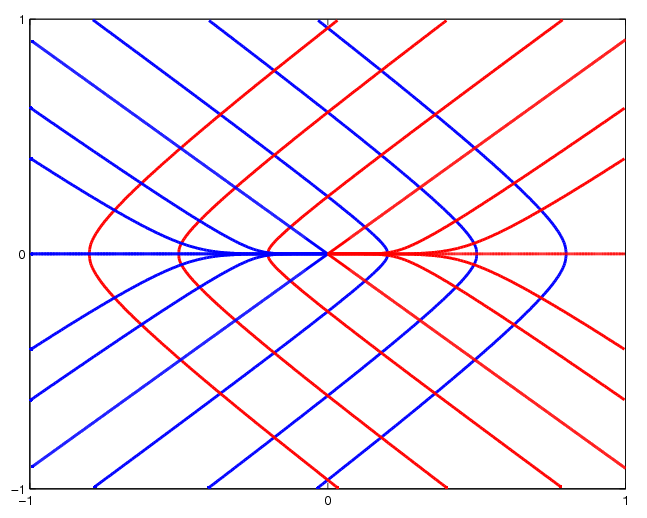 이 그림에서 빨간색 곡선은 한 가족의 주 방향에 대한 곡률선이며, 파란색 곡선은 다른 가족에 대한 곡률선이다.