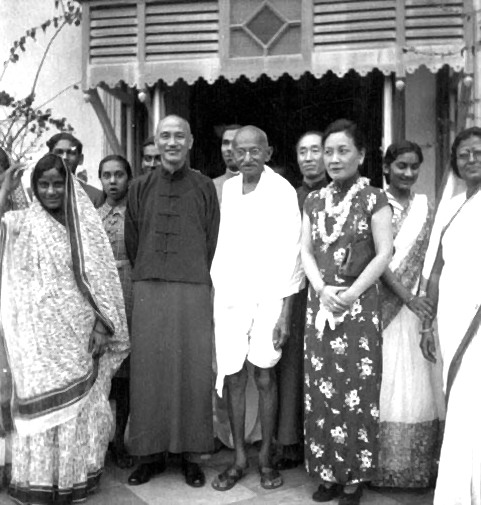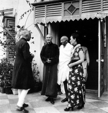 일본 제국과 서구 제국주의에 맞서 인도의 지원을 확보하고자 했던 장제스 부부는 1942년 영국령 인도를 방문하여 자와할랄 네루, 마하트마 간디, 무하마드 알리 진나를 만났다.[60][61] 그러나 간디의 비폭력 저항에 대한 이견과 인도 분할 문제 등으로 인해 완전한 합의에는 이르지 못했다. 장제스는 간디의 사티아그라하에 대한 견해를 비판적으로 보았고, 진나가 영국에 의해 이용당하고 있다고 생각했다.[65] 그럼에도 불구하고 장제스 부부는 인도 독립 운동을 계속 지원했다.[66]