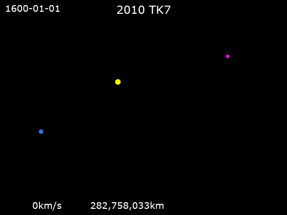 지구와 태양의 라그랑주 점 L4에 존재하는 소행성 2010 TK7는 발견된 유일한 지구의 트로이군 소행성이다.[68] L4와 L5 라그랑주 점은 기본적으로 안정적이지만, 다른 행성의 중력 영향으로 라그랑주 점을 중심으로 이동한다. 이 때문에 지구에서 보면 트로이군 소행성은 루프를 그리며 회전하는 것처럼 보인다.[68]