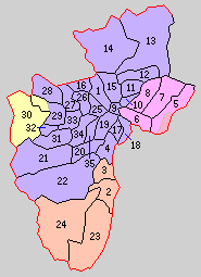 1879년 행정 구역으로 출범 당시의 군역은 현재의 1정 1촌 외에 아래의 구역에 해당한다.