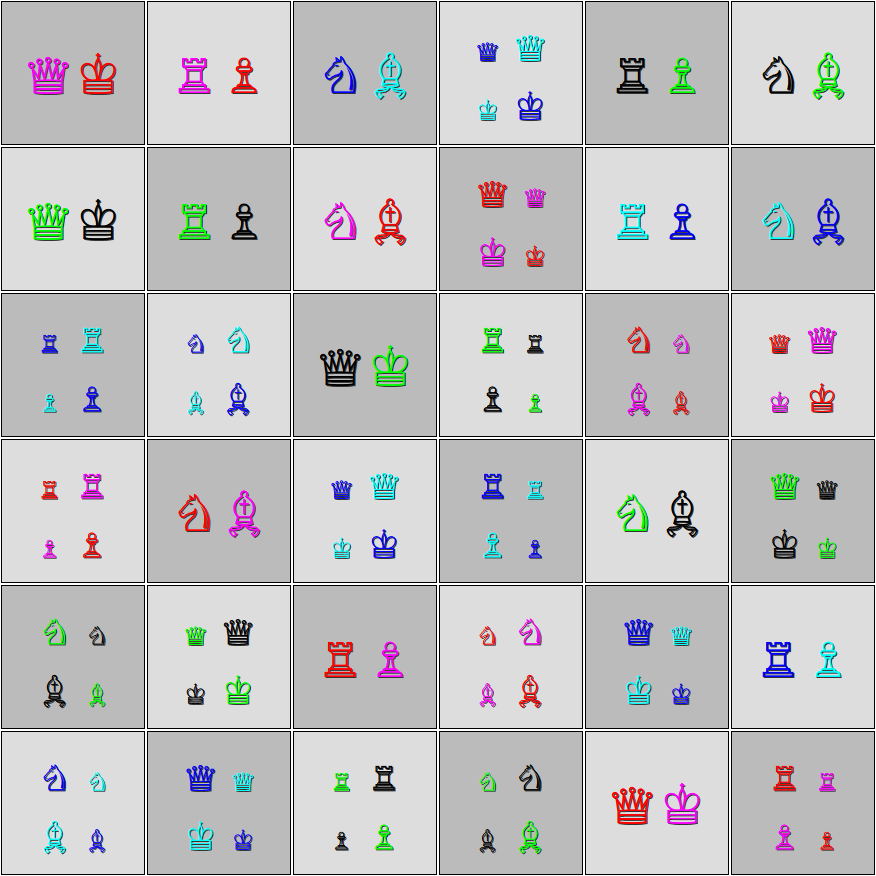 매우 흥미로운 질문으로, 오랫동안 많은 사람들의 독창성을 발휘하게 했으며, 특히 조합 연구와 같은 새로운 분석 분야를 열어주는 듯한 다음과 같은 연구를 하게 했습니다. 이 질문은 6개의 서로 다른 연대에서 차출된 36명의 장교를 각 행(가로 및 세로)에 서로 다른 계급과 서로 다른 연대의 장교가 6명씩 있도록 정방형으로 배치하는 것입니다.