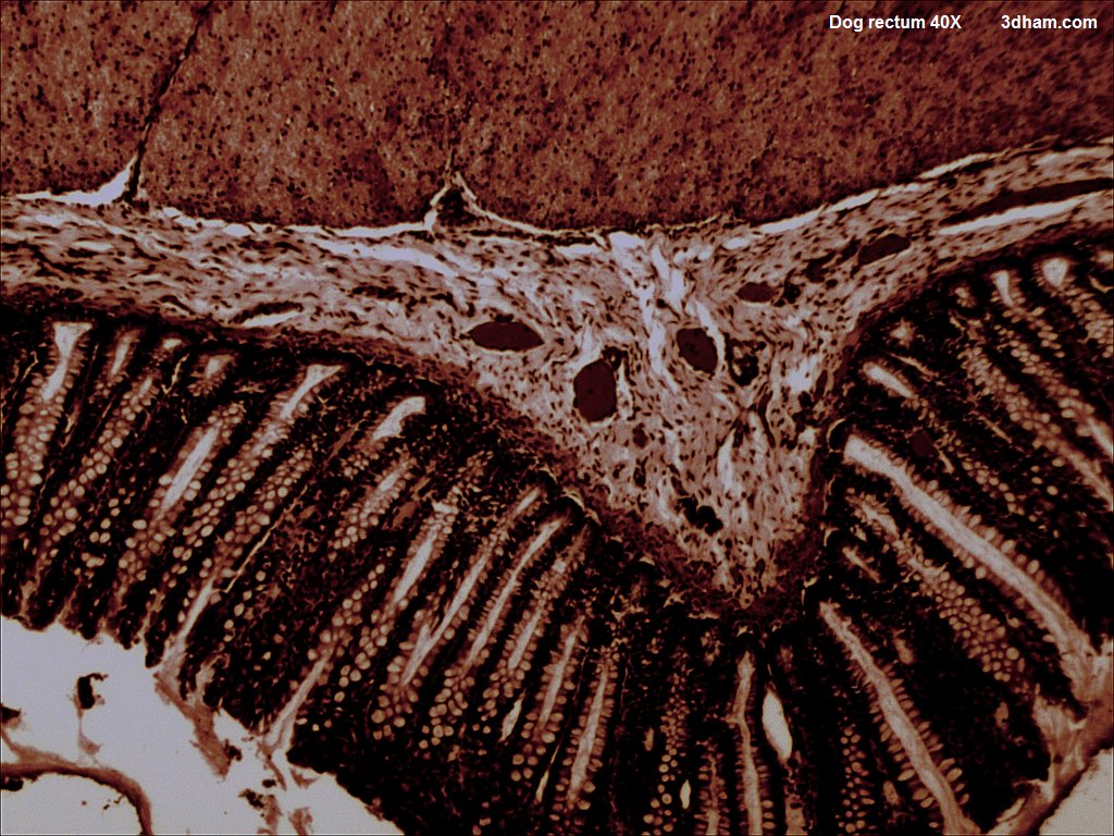 직장과 항문이 만나는 선에서 내벽은 급격하게 변화한다. 이 선을 기준으로 내벽은 직장의 원주 모양 세포에서 여러 층의 평평한 세포로 바뀐다.[5]