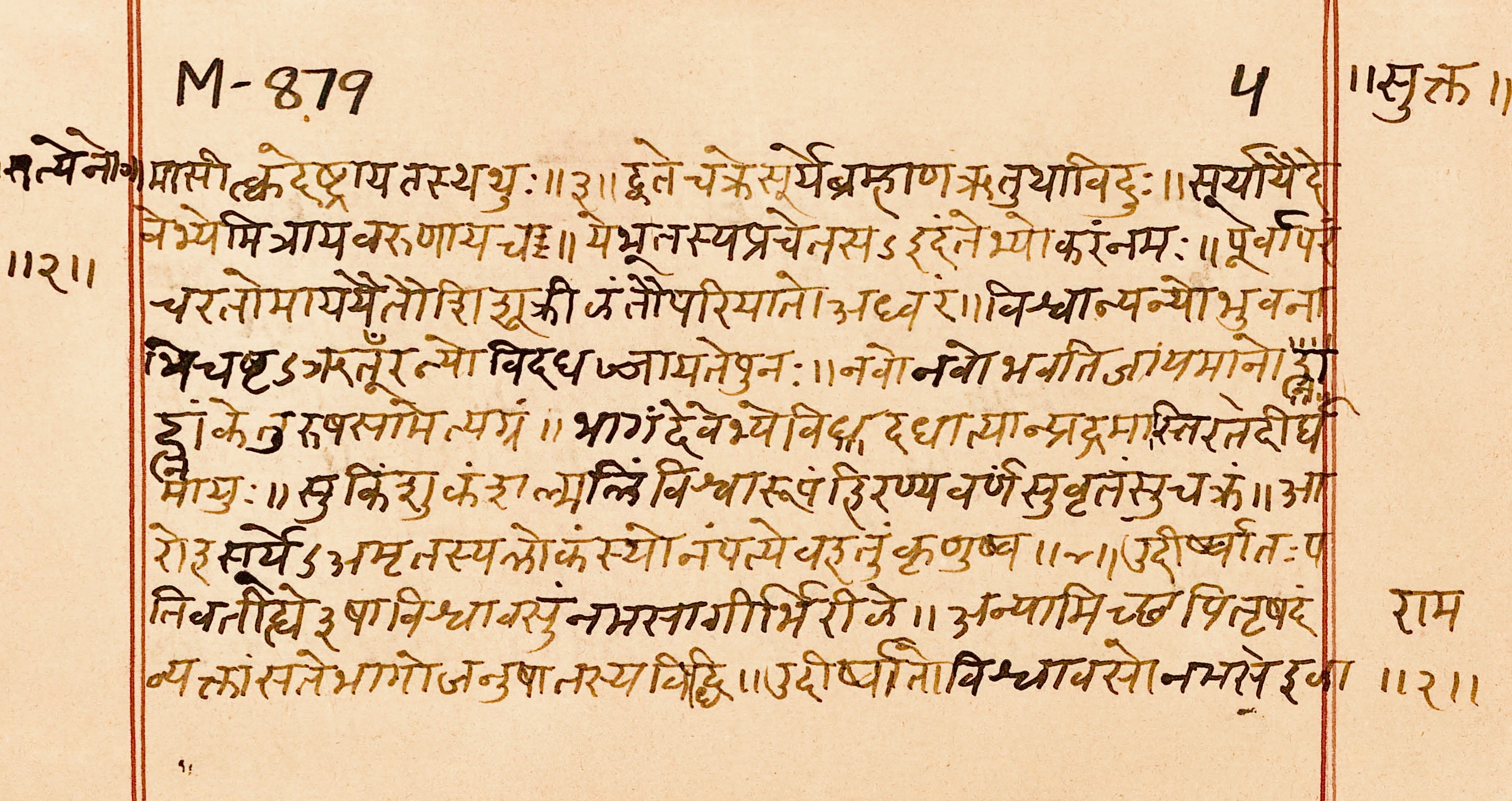 ''리그베다''는 1,000편이 넘는 베다 산스크리트어의 전례 찬송가 모음집으로, 인도에서 가장 오래되고 기본적인 종교 문헌 중 하나이다.[81]
