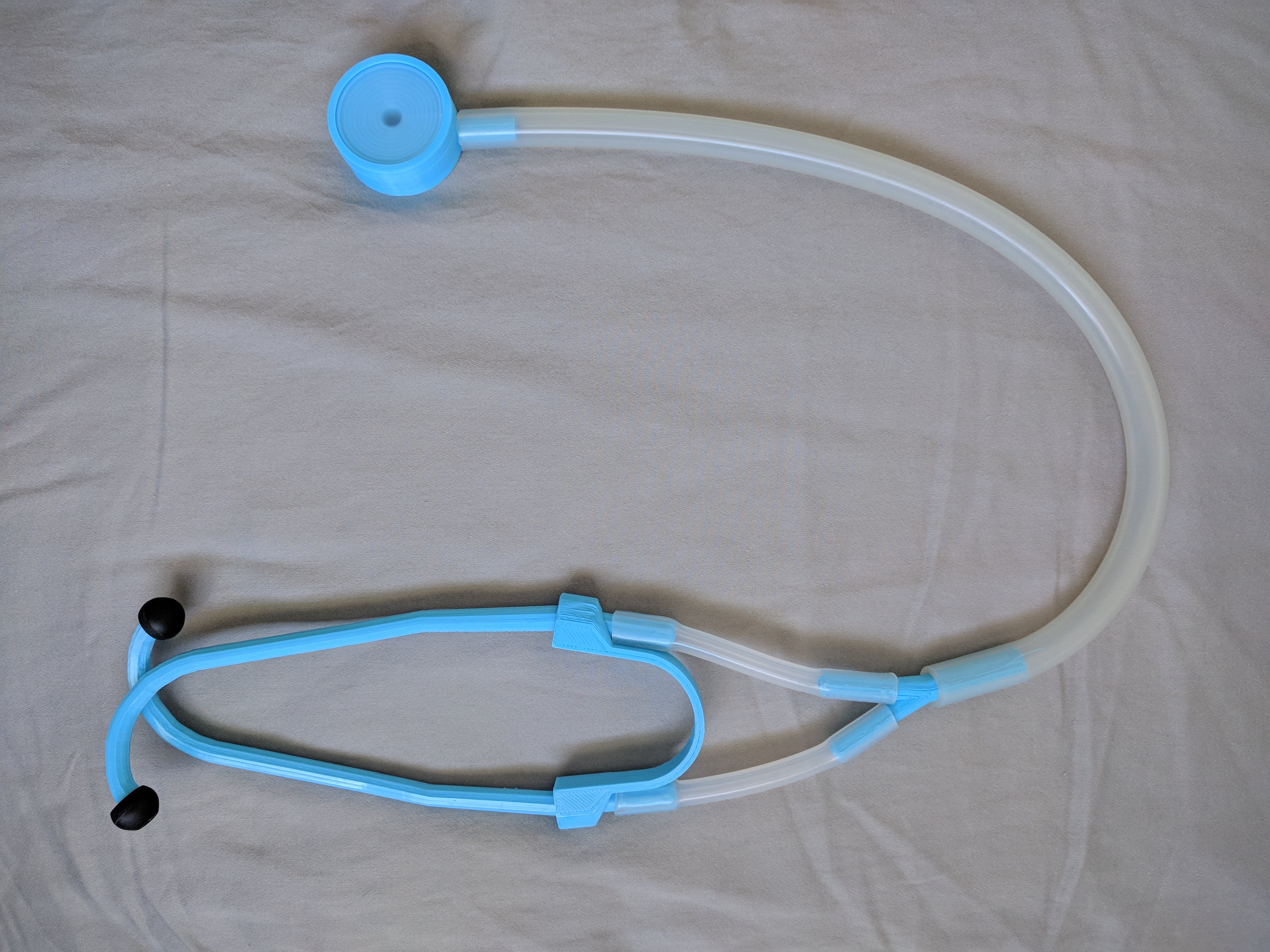 3D 프린팅 청진기는 가자 지구 봉쇄 상황에서 2012년 가자 지구 분쟁 당시 응급의학과 의사로 일하던 팔레스타인계 캐나다인 루바니 박사가 청진기와 같은 필수 의료 장비 부족을 겪으면서 필요성이 대두되었다. 루바니 박사가 개발한 3D 프린팅 청진기는 1960년대 ''Littmann Cardiology 3'' 청진기를 기반으로 제작되었다.[32]