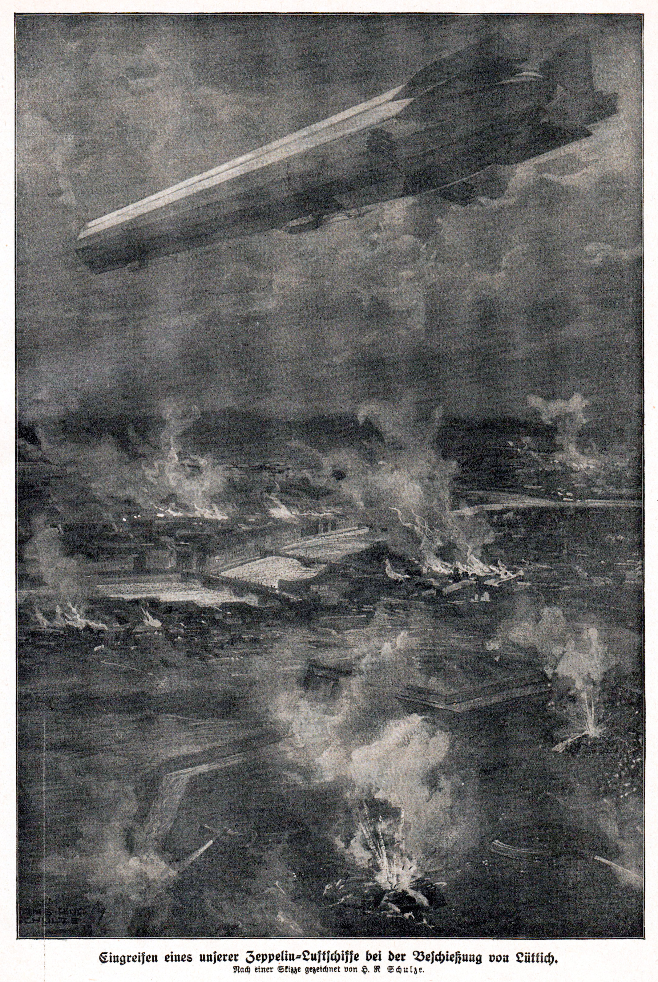 - 1914년 8월 5일, 비행선 Z VI는 리에주를 폭격했다. 구름 때문에 비교적 낮은 고도로 비행해야 했고, 이로 인해 소구경 화기에 취약해져 본 근처에 불시착하여 파괴되었다. 이 폭격으로 13발의 폭탄이 투하되었고, 9명의 민간인이 사망했다.[36]