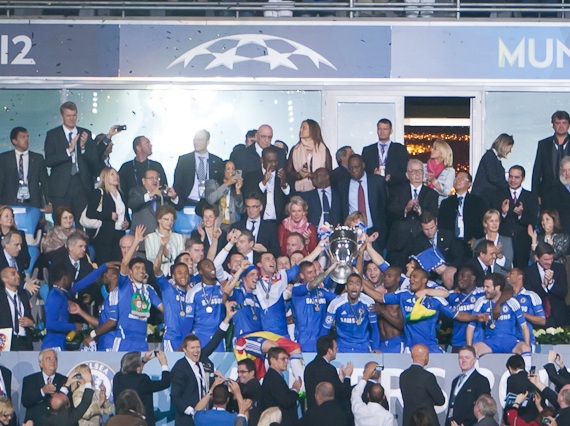 2011년 6월, 첼시는 새 감독으로 FC 포르투의 젊은 감독인 안드레 빌라스-보아스를 내정하였지만, 성적 부진이 이어지자 8개월 만에 해임하였다.[376] 뒤이어 전 선수 출신인 로베르토 디 마테오가 직무를 대행하였다. 디 마테오 감독 하의 첼시는 2011-12 FA컵에서 우승을 거두었으며,[377][378] UEFA 챔피언스리그 결승에 진출하여 승부차기에서 바이에른 뮌헨을 4-3으로 꺾고 구단 역사상 최초의 챔피언스리그 타이틀을 획득하였다.[379][380] 이는 런던의 축구 팀이 거둔 최초의 대회 우승이기도 하다.[379]