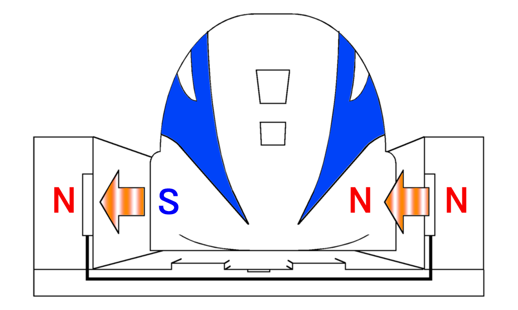 이 코일들은 유도력과 안정화력도 생성한다. 코일이 가이드웨이 아래에서 교차 연결되어 있기 때문에 열차가 중앙에서 벗어나면 위치를 바로잡는 전류가 연결부에 유도된다.