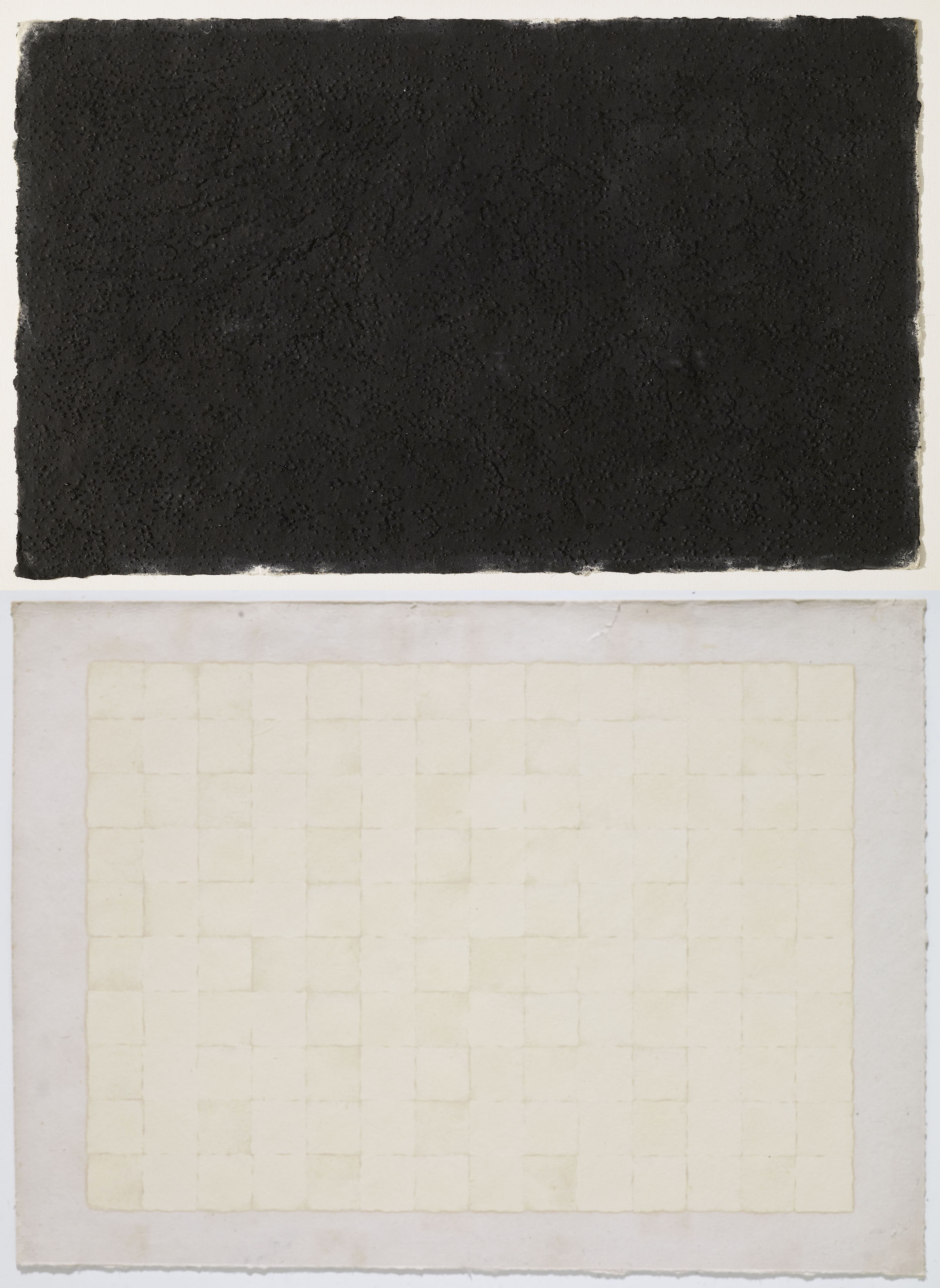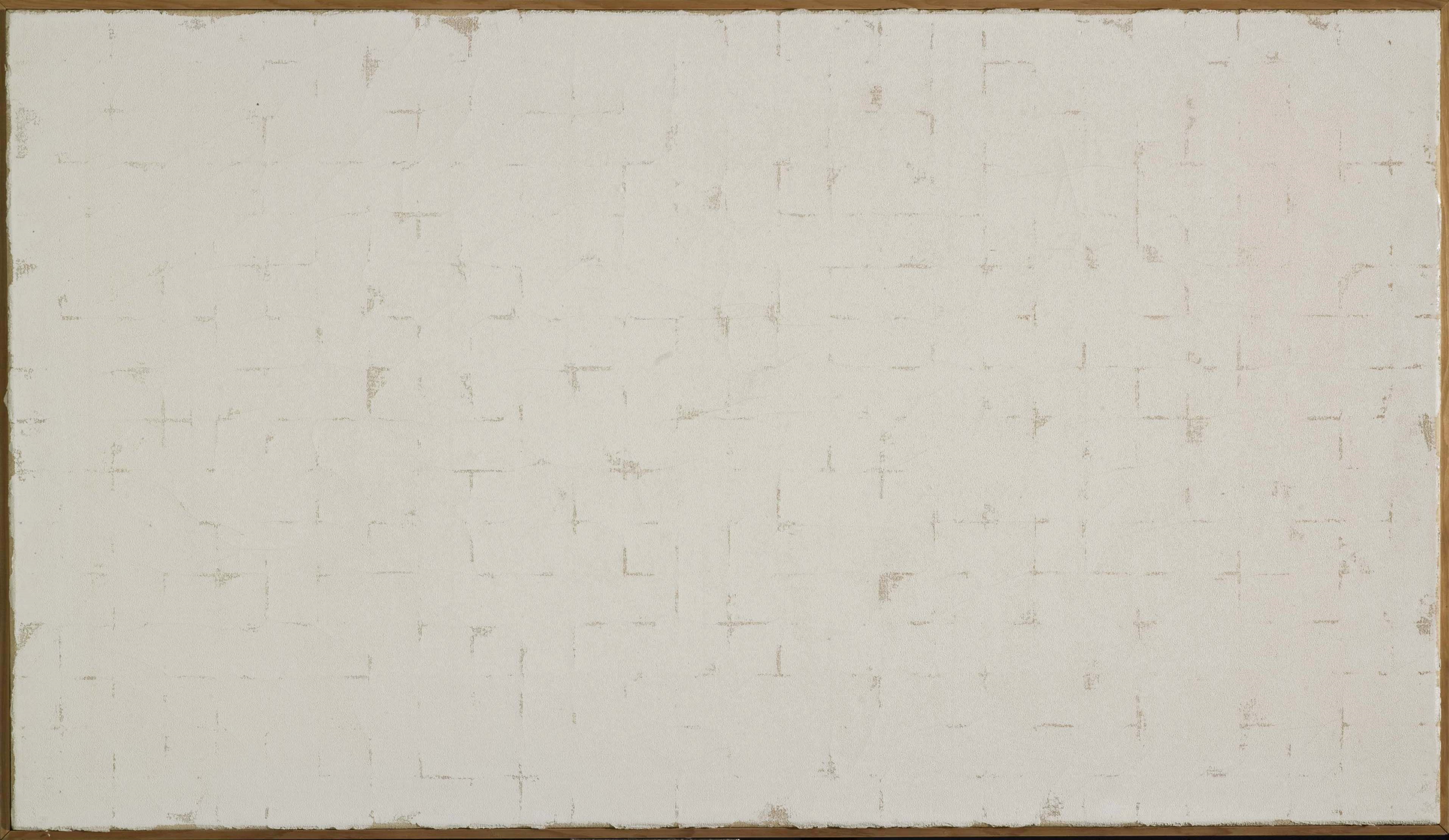 반복적인 흔적 만들기는 회화에 실체성을 부여할 뿐만 아니라, 한지를 사용하여 "평면적 조건"을 창조한다. 흰색 한지 시트를 길게 잘라 잉크에 담근 후 수평으로 붙이는 방식으로, "흰색 페인트 대신 흰색 한지를 사용했다. 띠로 자르고 붙이는 것은 사각형 분할의 변형이다. 페인트 대신 한지를 사용함으로써 잉크로 검은 면이 필요했다. 동시에, 그것을 하나로 모으려는 시도가 계속되어 '바탕'과 '이미지' 사이의 관계를 제거했다."[5][6]