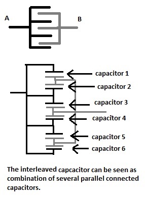 여기서 는 단일 전극판의 정전용량이고, 은 겹쳐진 전극판의 수이다.