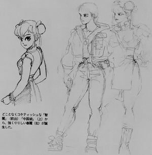 춘리의 디자인은 주로 이전 캡콤 게임인 ''스트라이더''의 여성 악당 통 푸(Tong Pooh)에서 영감을 받았다.[3] 캡콤 디자이너 니시타니 아키라는 "예전에는 격투 게임에 여성이 없었습니다. 춘리의 경우, 저는 게임에 여성을 넣고 싶었습니다. 그녀의 전투 능력이 무엇일지 결정했고, 중국을 고향으로 떠올렸습니다."라고 춘리 제작을 회상했다.[4] 캡콤 아티스트이자 디자이너 아키라 "아키만" 야스다는 1983년 애니메이션 영화 ''하르마게돈: 환마대전''(초기 캐릭터 디자인 작업은 ''아키라'' 제작자 오토모 가츠히로가 담당)에서 중국 여성 캐릭터 타오(Tao)에게서 춘리에 대한 초기 영감을 얻었다고 말했다.[5]