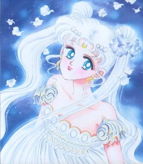 만화에서 묘사된 프린세스 세레니티. 애니메이션과 달리, 이 버전에서 세레니티는 거의 항상 은발로 묘사된다.