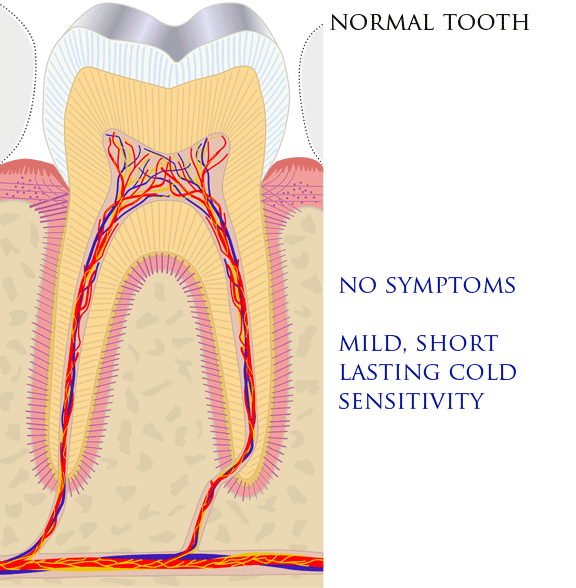 치아와 잇몸은 건강할 때 정상적인 감각을 나타낸다. 이러한 감각은 일반적으로 예리하며 자극이 있는 동안 지속된다.[17] 생리적 감각에서 질병의 통증까지의 연속적인 스펙트럼이 있다.[17] 통증은 강하거나 손상적인 사건으로 인해 발생하는 불쾌한 감각이다. 치통에서 신경은 외인성 공급원 또는 내인성 요인(예: 염증 매개체)에 의해 자극된다.[8]