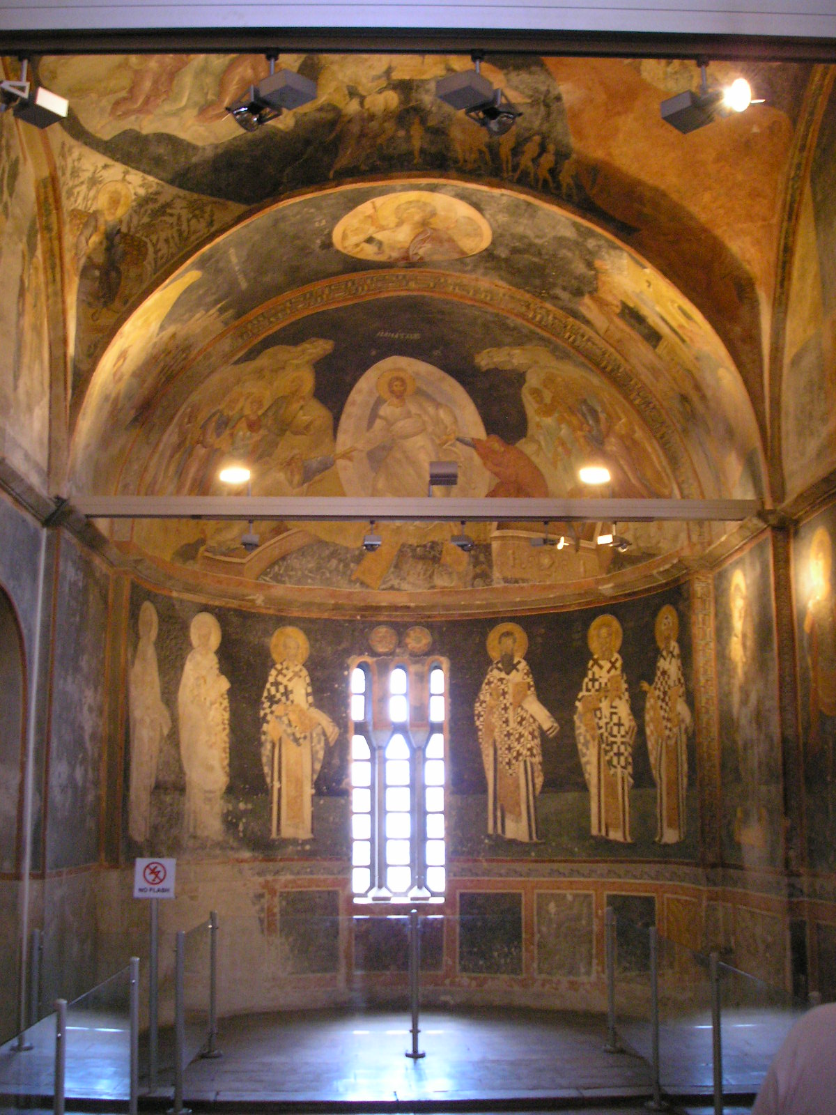 14세기 전반, 정치가이자 학자인 테오도로스 메토키테스가 증개축을 진행했다. 1321년 3월에 완성된 것이 확실하므로, 1316년부터 1321년까지 돔 개축, 본당 주변에 내외 2개의 나르테스와 남쪽 묘당 예배당(파레클리시온) 설치, 내진 좌우 소예배당 추가 작업이 이루어졌다. 그 결과 건물은 꽤 불규칙한 형태가 되었고, 축선은 어긋났으며, 나르테스는 크기가 다른 석조 베이로 분절되었다. 건축적인 질은 좋지 않지만, 오늘날 볼 수 있는 프레스코화는 이 때 그려졌다.[4]2. 4. 오스만 제국 시대 (15세기~20세기)
