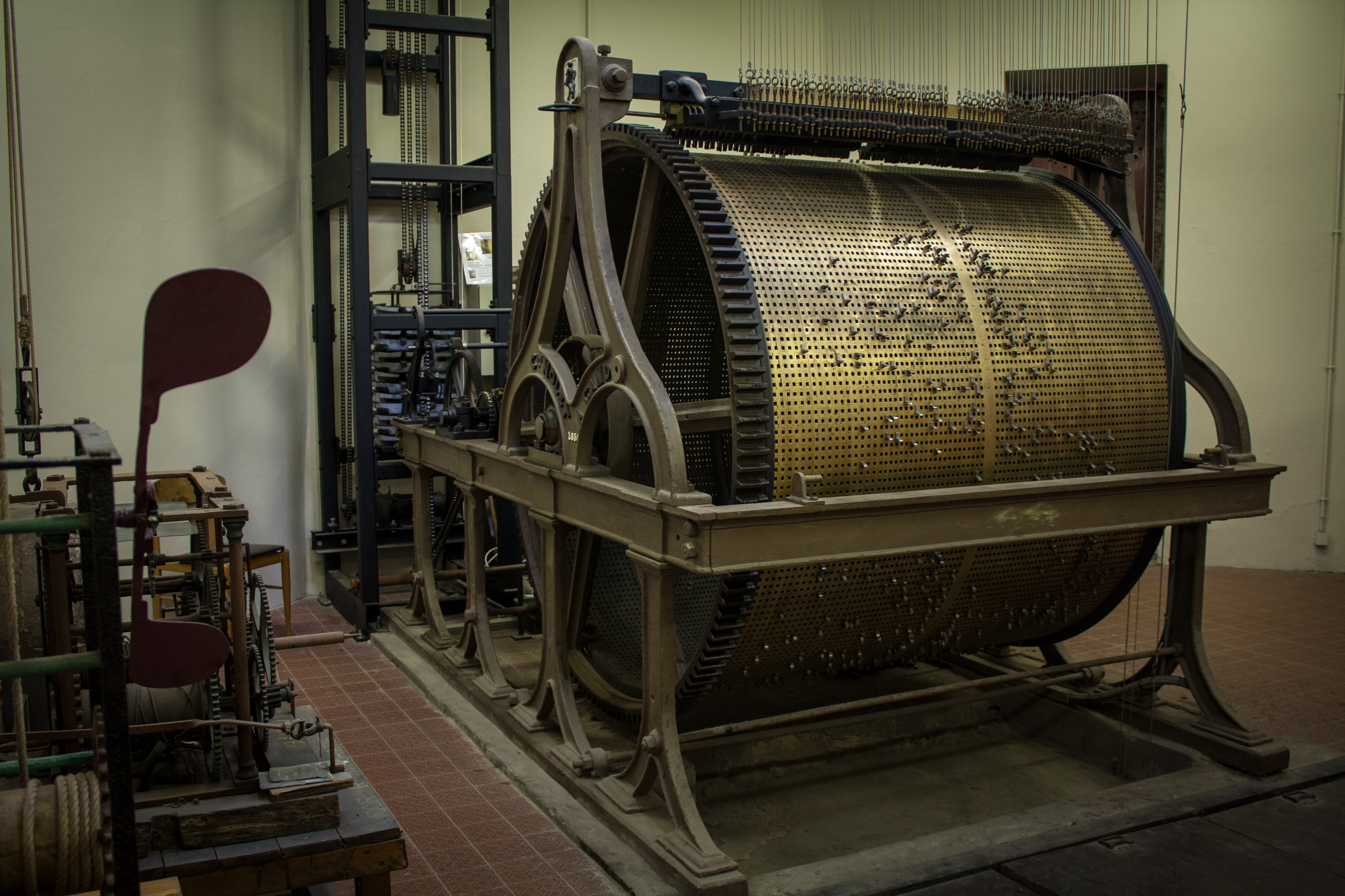카리용에는 단순한 곡이나 웨스트민스터의 종 자동 연주 기구를 갖춘 것이 있다[3]。 유럽에서는 시계에 연결된 큰 금속제 실린더 모양의 연주 드럼을 사용하는 카리용이 많다[4]。 연주 드럼 표면에는 금속 말뚝이 박혀 있고, 그 바로 옆에는 종을 울리는 해머에 연결된 레버가 설치되어 있다. 드럼이 회전하면 말뚝이 레버에 걸리고, 더 회전하면 레버가 말뚝에서 빠져나가면서 해머가 종을 울리는 구조이다[5]。 말뚝은 한 시간마다 또는 15분마다 간단한 곡을 연주하도록 배열된다. 이 시계 장치를 태엽으로, 실린더를 소형화하고, 종을 빗 모양 금속판으로 만든 것이 현대의 실린더형 오르골이다.