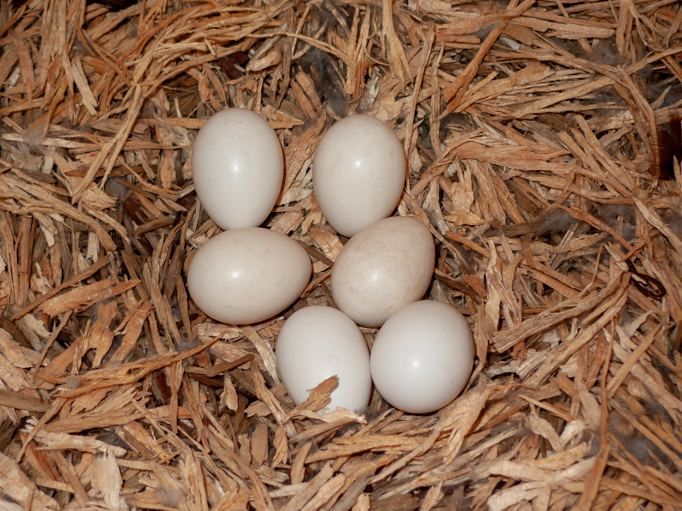 웰링턴의 질랜디아 야생 동물 보호구역에 있는 나무 둥지 상자에 북섬 카카가 낳은 알