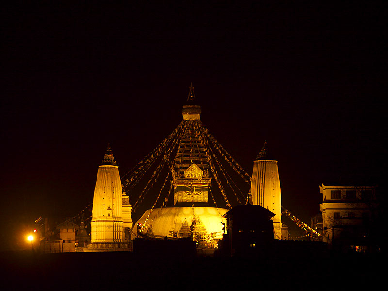 카트만두 분지는 다섯 개의 산으로 둘러싸여 있으며, 바그마티 강, 비슈누마티 강 두 강이 흐르고, 두 강 사이에 카트만두 시가 자리 잡고 있다. 약 8000년 전까지는 호수 바닥이었다.[131][132] 카트만두 분지의 기원은 전설에 따르면 문수보살(만주슈리)이 여행 중에 본 호수에 핀 연꽃에 참배하기 위해 남쪽에 있는 산을 깎아 호수의 물을 흘려보내자, 비옥한 땅이 나타나 사람들이 살기 시작했다고 한다. 그 이후로 연꽃이 피었던 언덕은 스와얌부가 사는 성스러운 장소로 숭배받게 되었고, 13세기 무렵까지 많은 건물과 스투파 등이 지어졌다.[133]