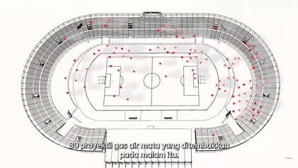 사고 당일 밤 경기장 안팎에서 발사된 최루탄과 연막탄의 위치를 보여주는 그래픽