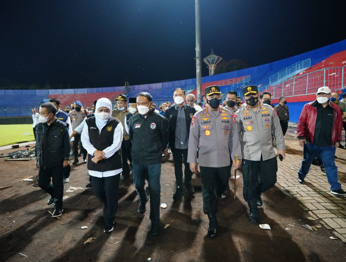 사고 후 칸주루한 스타디움에서 인도네시아 경찰청장 리스티요 시기트 프라보워와 동자바 주지사 코피파 인다르 파라완사.
