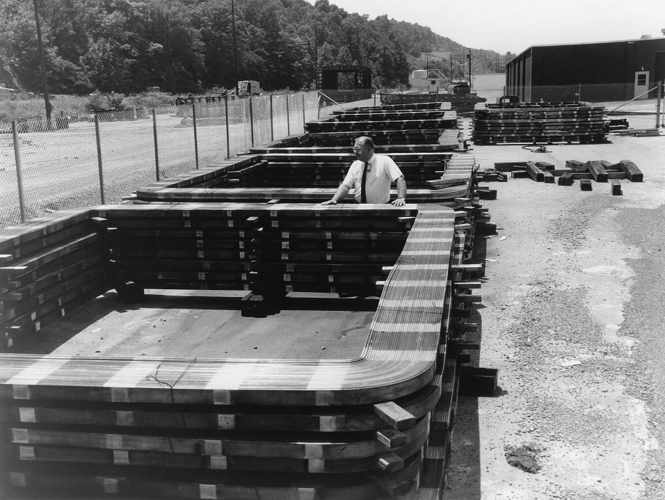 오크리지 국립 연구소에 전자기 플랜트(Y-12) 건설이 시작되어 여러 개의 주요 공정 건물과 부속 구조물이 건설되었다.[10] 지반 문제, 자재 부족 등 여러 어려움이 있었지만, 은을 대체재로 사용하는 등 창의적인 해결책이 동원되었다.XA 캘루트론을 24배 확대한 알파 경주로는 96개의 캘루트론 알파 탱크를 수용할 수 있었다. 캘루트론은 수직으로 세워져 안쪽과 바깥쪽 기계 쌍으로 서로 마주보게 배열되었다. 자기 손실을 최소화하고 강철 소비를 절약하기 위해 조립품은 경주로 모양으로 약 37.19m(37.19m) 길이, 약 23.47m(23.47m) 너비, 약 4.57m(4.57m) 높이의 타원형으로 구부러졌다.[10] 두 개의 알파 I 건물(9201-1 및 9201-2)에는 각각 두 개의 경주로가 있었고, 알파 I (9201-3)에는 한 개만 있었다. 베타 경주로는 더 작고 선형이며 생산보다는 회수를 위해 최적화되었으며, 96개 대신 36개의 공정 빈만 있었다. 4개의 알파 II 경주로도 선형으로 구성되었으며, 개선된 자석 및 진공 시스템을 갖추고 있었다.