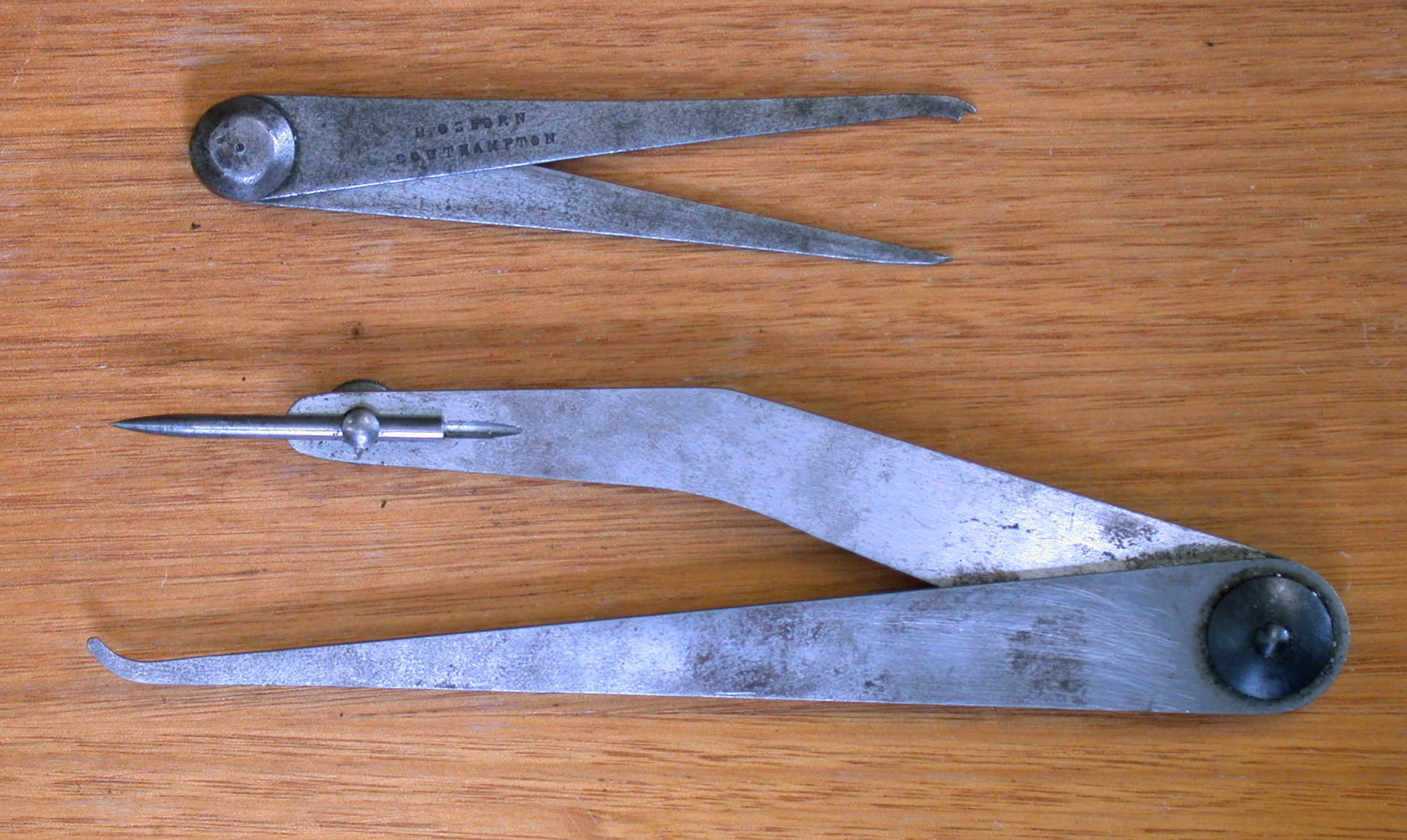 - '''내경 캘리퍼스''': 물체 내부 직경을 측정한다. 다리가 바깥쪽으로 구부러져 있다.