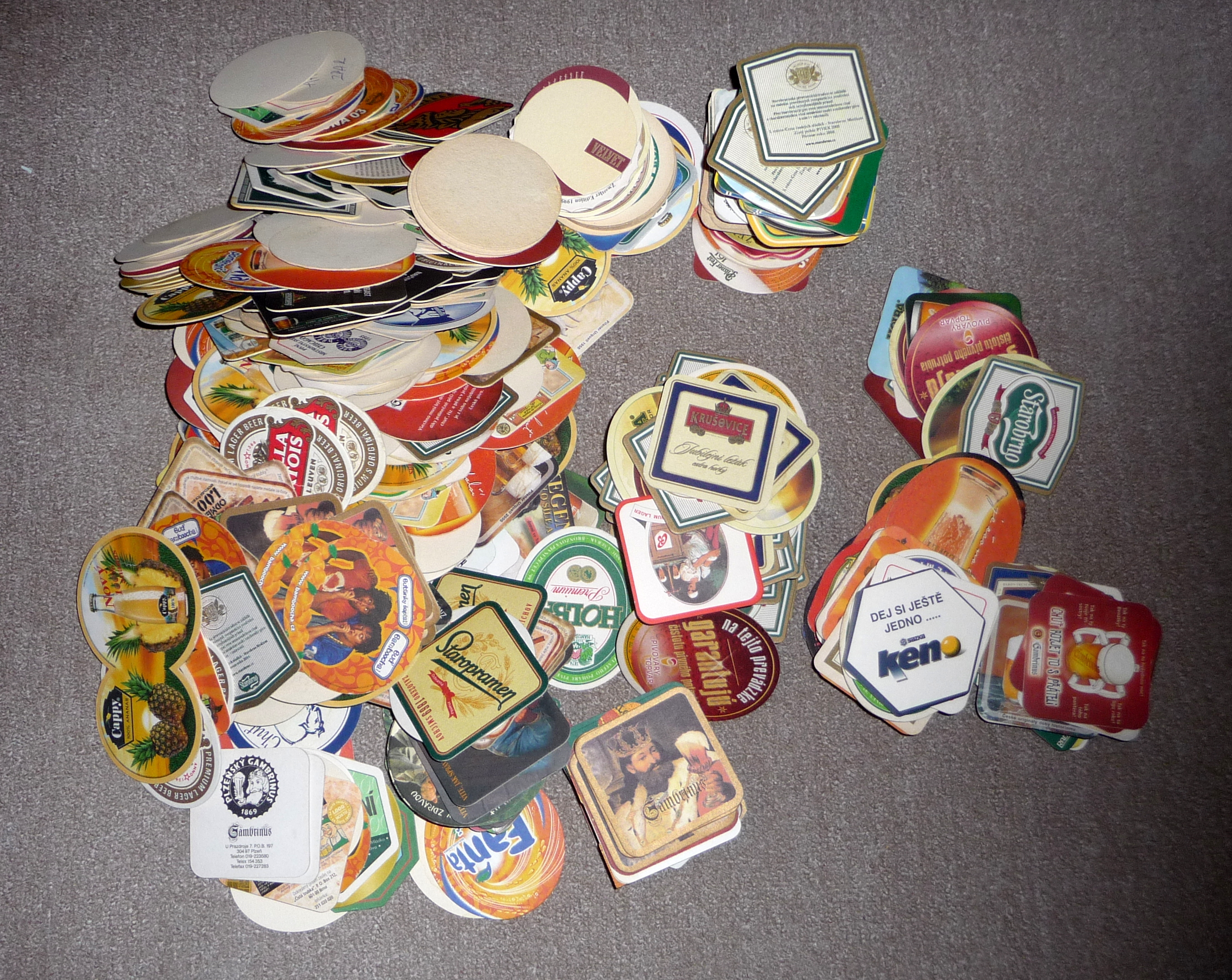 컵받침은 수집 가치가 있는 품목이 될 수 있다. 테게스톨로지는 라틴어 tegesla("덮개" 또는 "매트")에서 유래한 용어로, 컵받침 수집을 의미하며, 수집가는 테게스톨로지스트라고 불린다.[6] 1960년 영국 Pathé News 단편 영화에서는 코미디 듀오 모어컴과 와이즈(Morecambe and Wise)가 테게스톨로지스트로 묘사되기도 했다.[7] 유럽이나 일본 등지에서는 맥주 컵받침 수집가들이 있으며, 이들 사이에서 교환회가 열리기도 한다.5. 사진 갤러리