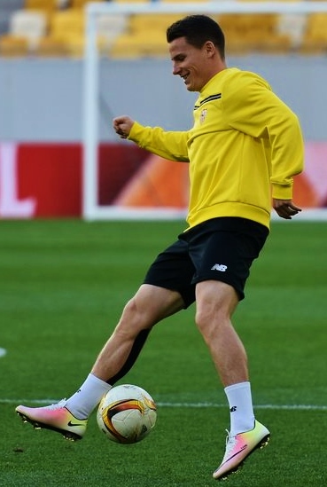 2013년 스페인 라 리가의 세비야 FC로 이적하여 선수 경력의 전성기를 맞이했다. 세 시즌 동안 팀의 주포로 활약하며 UEFA 유로파 리그 3회 연속 우승이라는 클럽 역사상 최고의 성과를 이끌었다. 특히 2014년 유로파 리그 결승전 승부차기에서 마지막 키커로 나서 우승을 확정지었고, 2016년 결승전에서는 동점골을 기록하며 역전 우승의 발판을 마련했다.