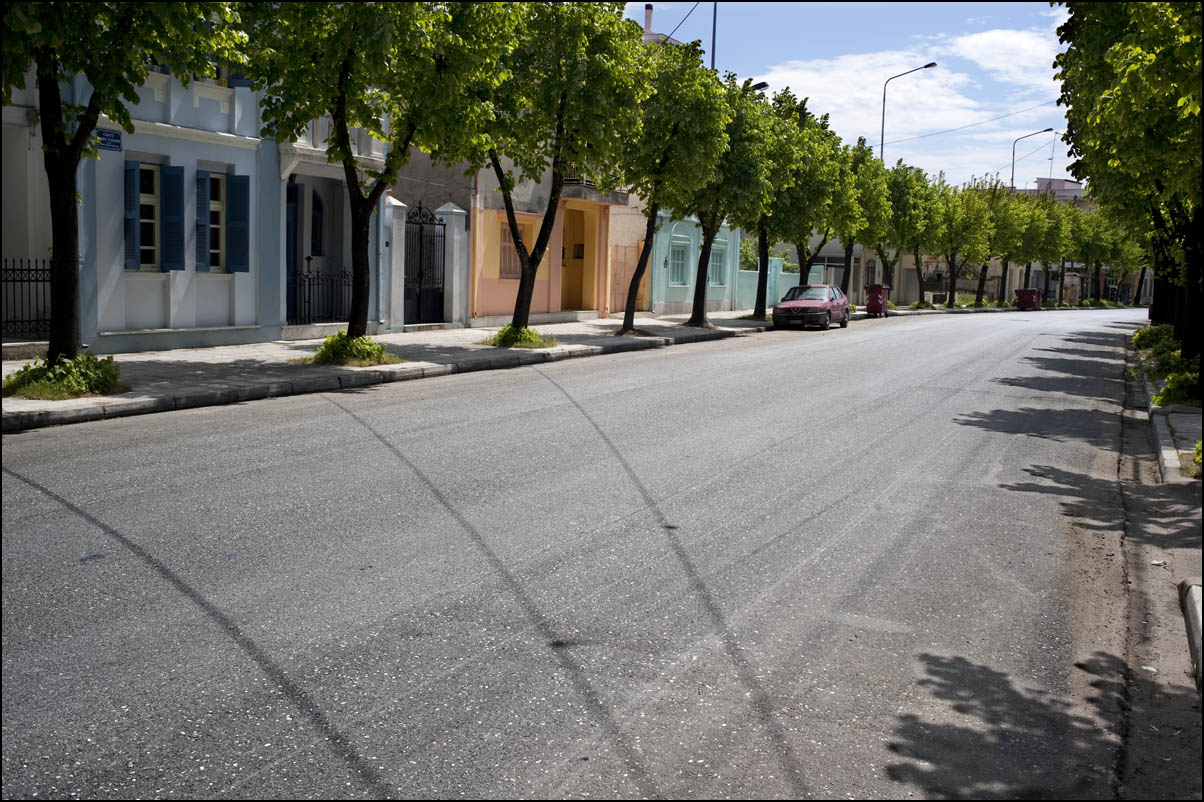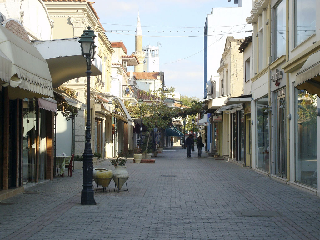 도시 중심부에는 아기아 파라스케비 중앙 공원이 자리하고 있다. 공원 안에는 높이 15m의 제2차 세계 대전 영웅 기념비가 세워져 있는데, 현지에서는 이 기념비를 '검'이라고 부른다. 새롭게 단장된 중앙 광장, 즉 '평화 광장'(el)은 이 도시에 많이 거주하는 학생들의 밤 시간대 주요 활동 무대가 되고 있다. 한편, 구 상업 중심지는 다른 그리스 도시에서는 보기 드물게 전통적인 상점과 공방들이 남아 있어 관광객들에게 인기 있는 장소이다. 도시 북서쪽 교외의 네아 모시누폴리 지역에는 코스모폴리스 파크라는 쇼핑몰이 들어서 있다. 이곳에는 백화점을 비롯해 다양한 상점, 슈퍼마켓, 영화관, 카페, 레스토랑 등이 입점해 있어 현지 주민과 관광객 모두에게 인기가 높다. 중앙 광장의 남서쪽에는 야외 시립 극장이 있어 전통적인 공연과 다양한 문화 행사가 열린다.