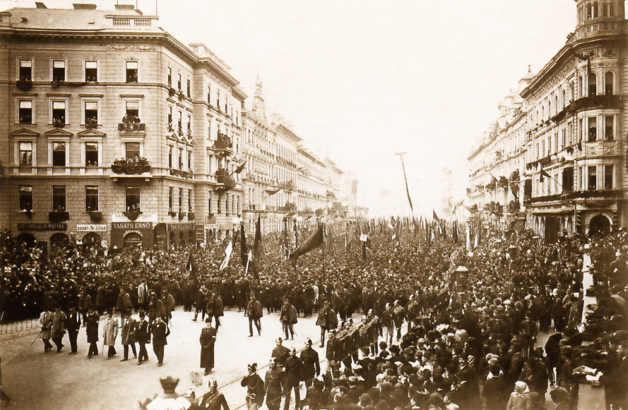 1848년 3월 3일, 코슈트는 파리 혁명 소식이 전해진 직후, 헝가리의 의회 정부와 오스트리아의 입헌 정부를 요구하는 연설을 했다.[34] 그는 합스부르크 왕가의 희망인 프란츠 요제프에게 자유로운 국민들의 열망에 부응하여 왕조의 오랜 영광을 이어가자고 호소했다. 그의 연설은 비엔나 거리에서 메테르니히를 전복시킨 폭도들에게 낭독되었고(3월 13일), 코슈트는 유럽 혁명의 지도자가 되었다.