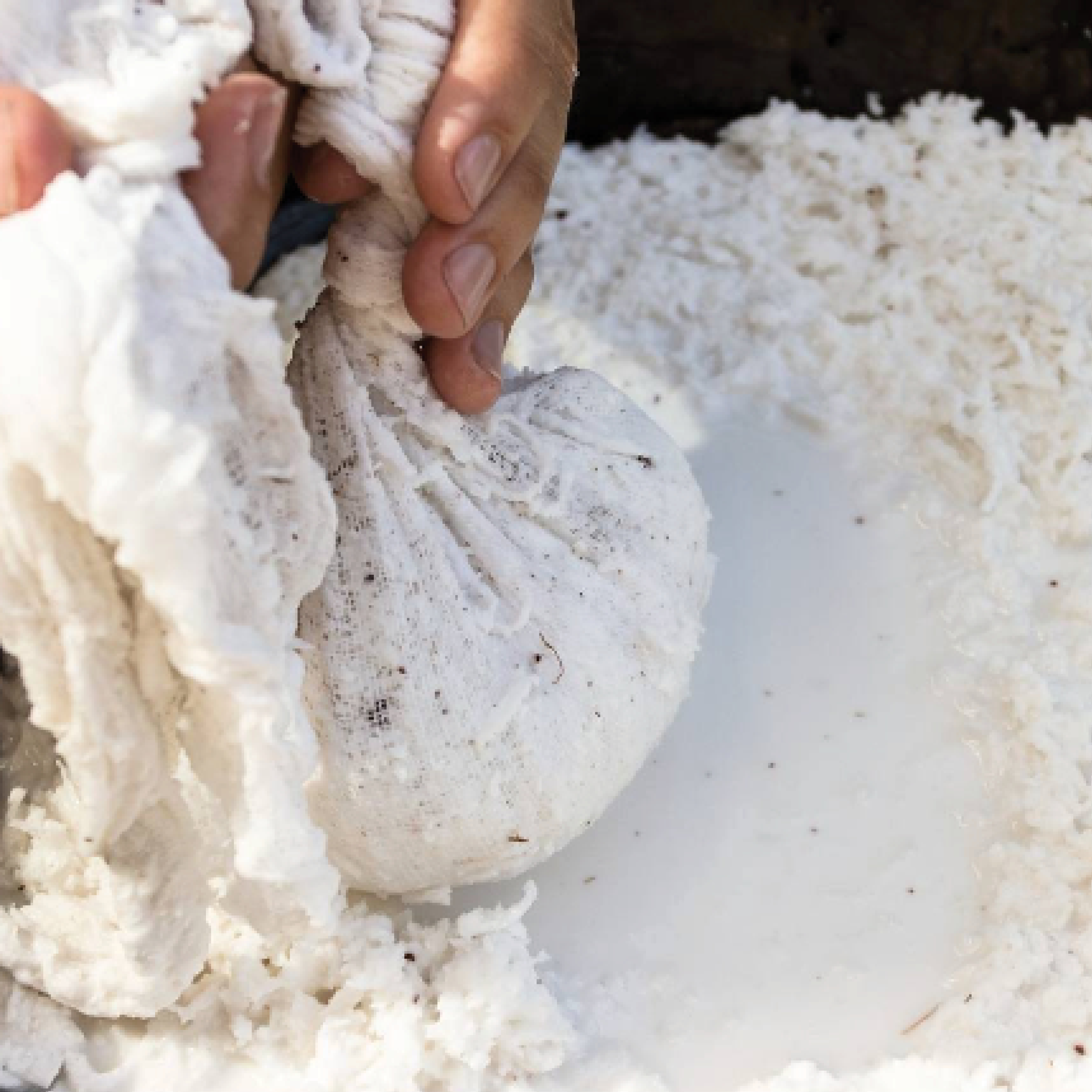 코코넛 밀크는 전통적으로 익은 코코넛의 흰 속살을 갈아서 만든다. 갈은 코코넛 과육에 소량의 뜨거운 물을 섞어 지방을 현탁시킨다.[1] 갈기는 수동 또는 기계로 할 수 있다.[1][11] 폴리네시아인들은 바다 히비스커스, 극락조화 또는 코코넛 자체의 섬유로 만든 묶음인 '타우아가'를 사용하여 과육에서 우유를 짜낸다.[9][10]