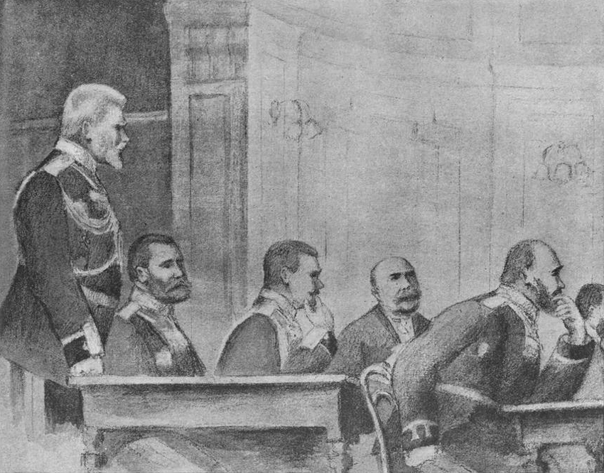 러일 전쟁 이후, 스미르노프는 스테셀과 포크 등이 직무를 태만히 하고 겁을 먹었다고 비난하는 성명을 발표했다.[6][1][4] 1908년 2월 7일 열린 군법 회의에서 그들에게 사형을 구형했으나,[6][1][4] 형량은 징역 10년으로 감형되었다.[6][1] 이 일로 포크가 결투를 신청하여 싸우다가 복부에 부상을 입었다.[6][2]