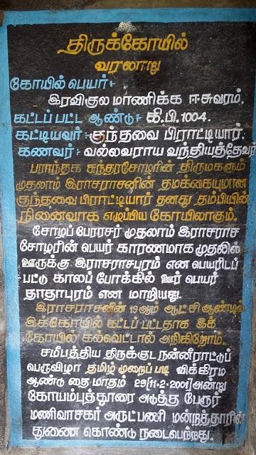 > "피란타칸-쿤다바이-피라티야르 공주가 쿤다바이-빈나가르-알바르 사원에 등불을 선물한 양을 기록하고 있다. 사원의 관리를 맡았던 세나파티인 뭄무디-촐라 브라마마라야르도 언급되고 있다."[29][30]