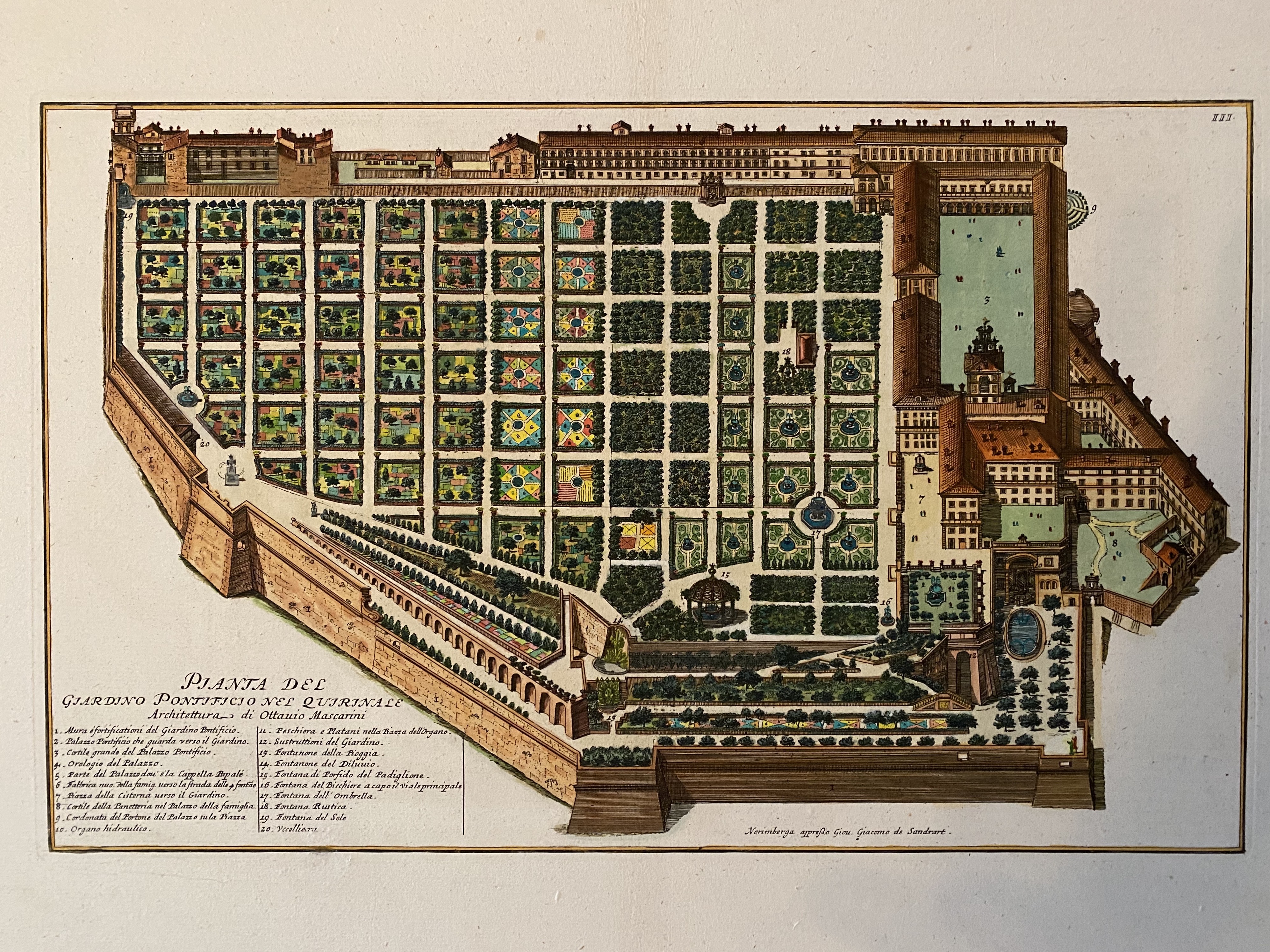 현재의 배치는 17세기에 "정형화"된 정원과 건물 본래의 중심부를 마주하고 있으며, 18세기 후반의 "낭만적인" 정원과 조화를 이루고 있다. 이 시기에는 페르디난도 푸가가 베네딕토 14세 람베르티니의 접견실로 지은 우아한 커피 하우스가 보존되어 있으며, 폼페오 바토니와 조반니 파올로 파니니의 그림으로 장식되어 있다.