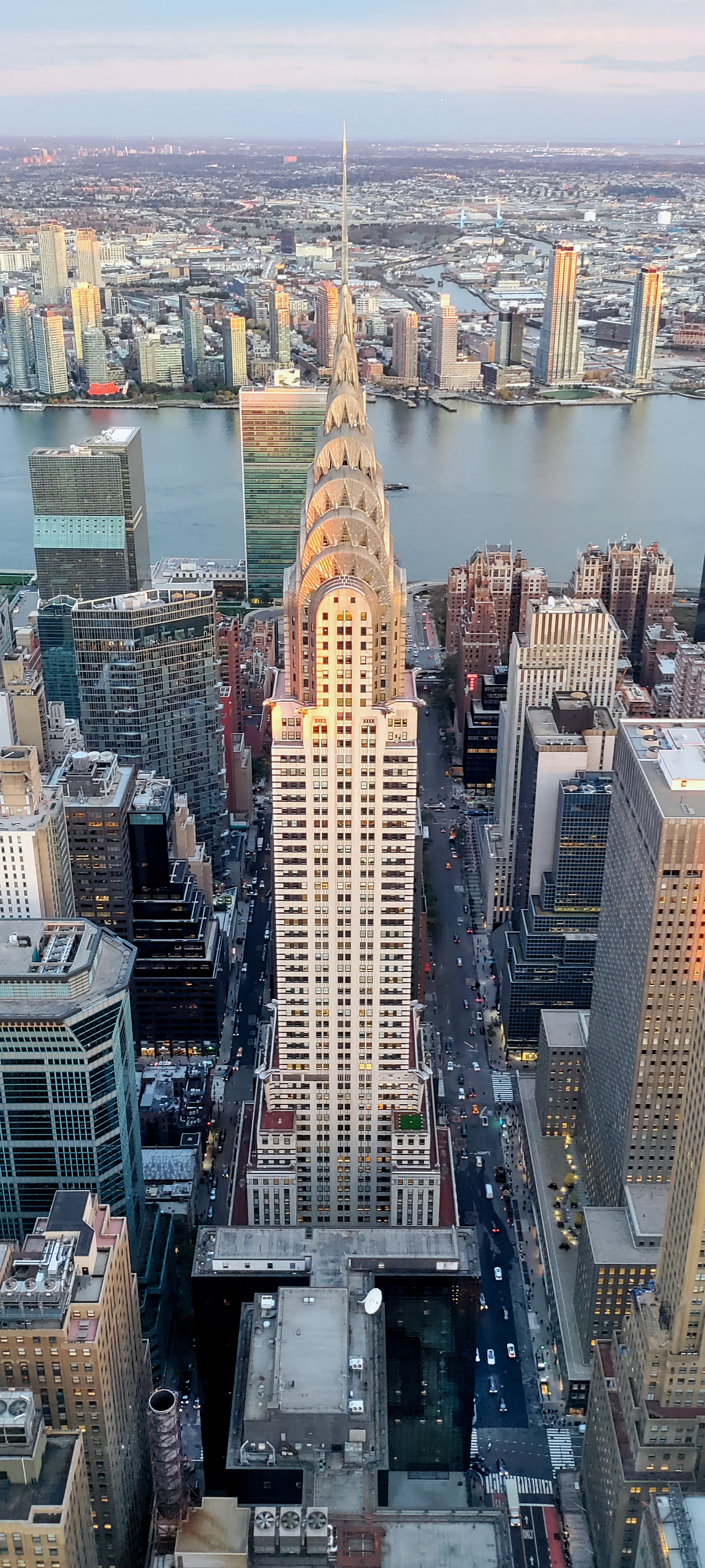 원 밴더빌트의 더 서밋에서 본 크라이슬러 빌딩, 배경에는 유엔 본부가 있다.