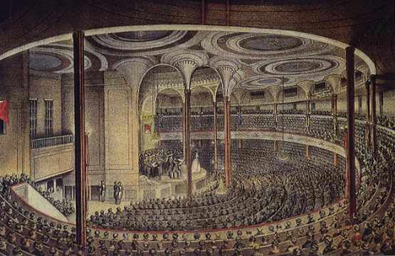 1845년경, 캐슬 가든 내부에 지붕이 설치되면서 극장으로 개조되었다.[32][33][34] 이 극장은 6,000석 규모였다.[32] 1850년, 스웨덴 소프라노 제니 린드는 캐슬 가든에서 두 번의 콘서트를 통해 미국 데뷔 공연을 가졌으며,[37][38] 티켓 가격은 최대 225USD였다.[39] 1년 후, 캐슬 가든은 "대중 가격"으로 콘서트 티켓을 판매하기 시작했다.[40] 1850년대 초, 유럽 댄싱 스타 롤라 몬테즈는 "타란툴라 댄스"를 공연했고,[41] 루이 앙투안 쥘리앵은 클래식과 경음악을 혼합한 콘서트를 열었다.[41] 맥스 마레체크 이탈리안 오페라 컴퍼니는 캐슬 가든에서 가에타노 도니체티의 ''마리노 팔리에로''(1851년 6월 17일), 주세페 베르디의 ''루이자 밀러''(1854년 7월 20일) 등 두 오페라의 뉴욕 초연을 개최했다.[42][43][44]