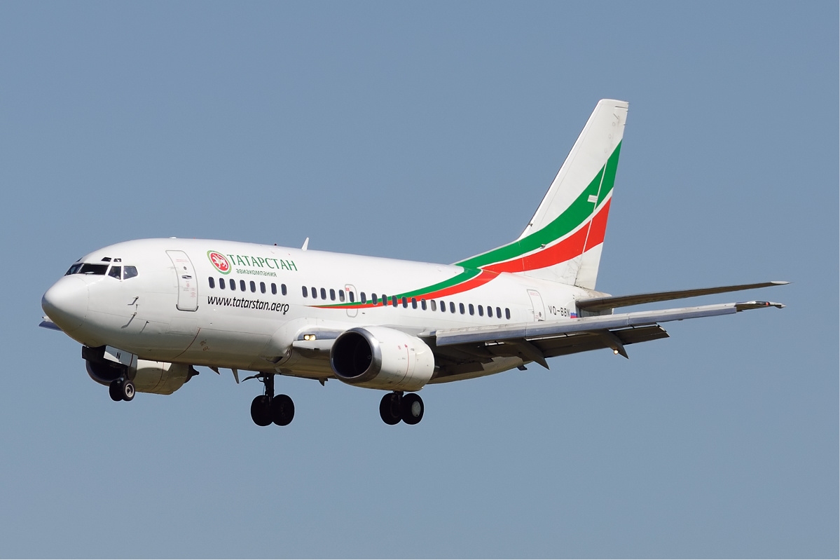 보잉 737-500(기체 등록 번호: VQ-BBN)은 2013년 11월 17일 타타르스탄 항공 363편 추락 사고로 파괴되었다. 사진은 2009년 카잔 국제공항에 접근하는 모습이다.