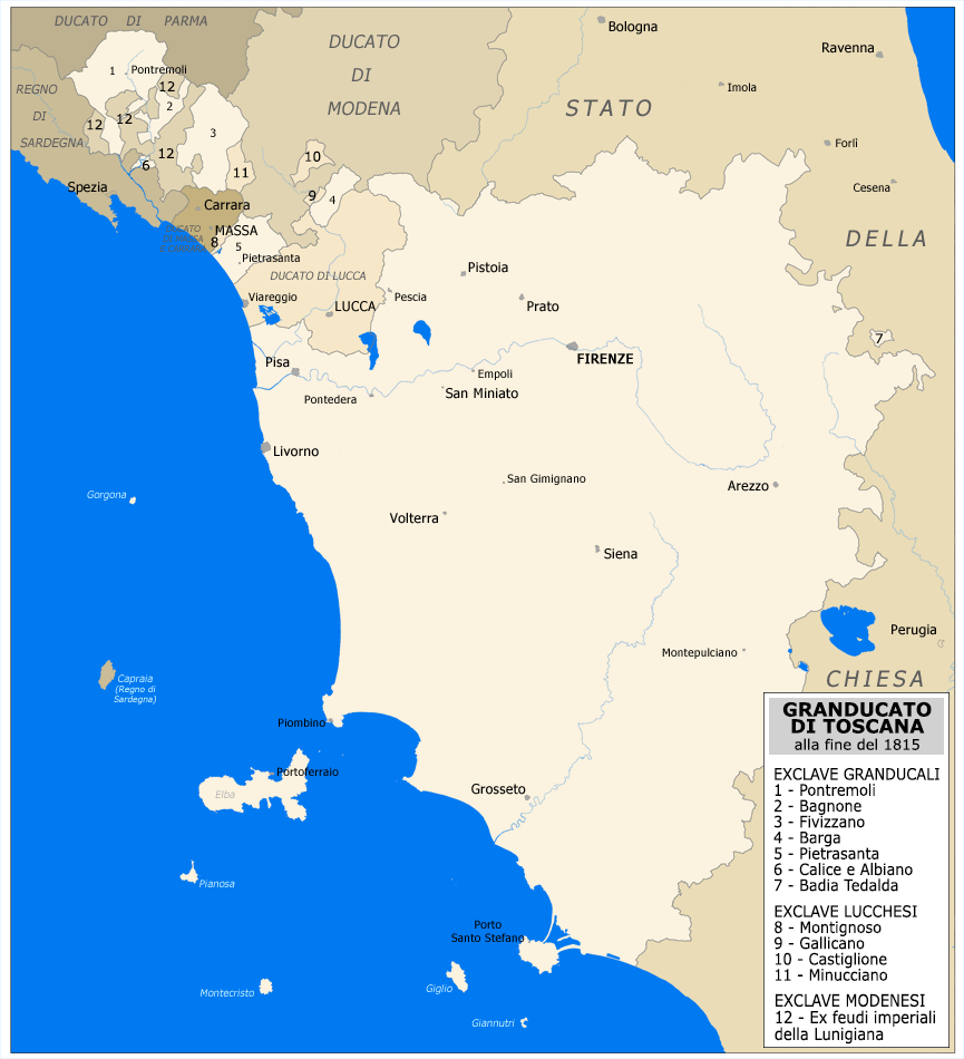 사르데냐 왕국에 병합된 해. 1801년에 토스카나 대공국은 일시적으로 폐지되었지만, 1815년에 부활했다.