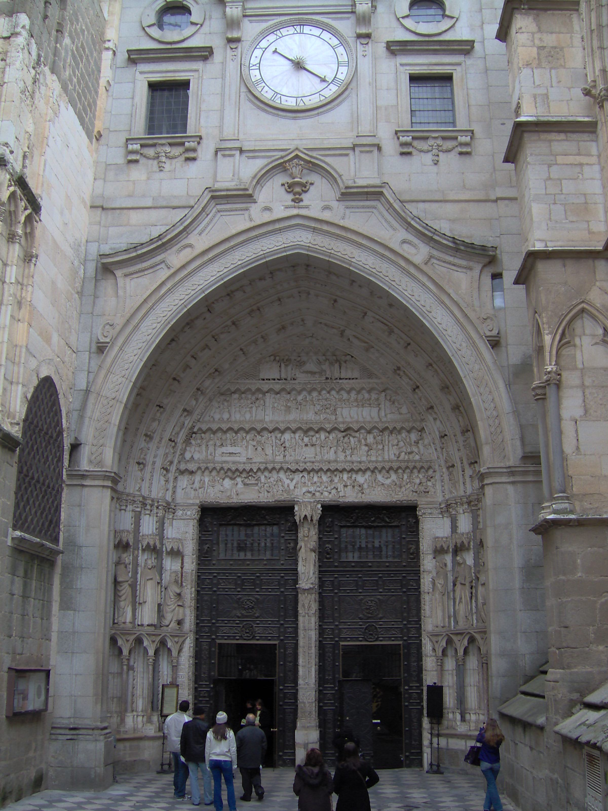 톨레도 대성당의 주 정면에는 세 개의 큰 문이 있다. 중앙의 '''용서의 문'''(Puerta del Perdón), 오른쪽의 '''최후의 심판의 문'''(Puerta del Juicio Final), 왼쪽의 '''지옥의 문'''(Puerta del Infierno)이다.
